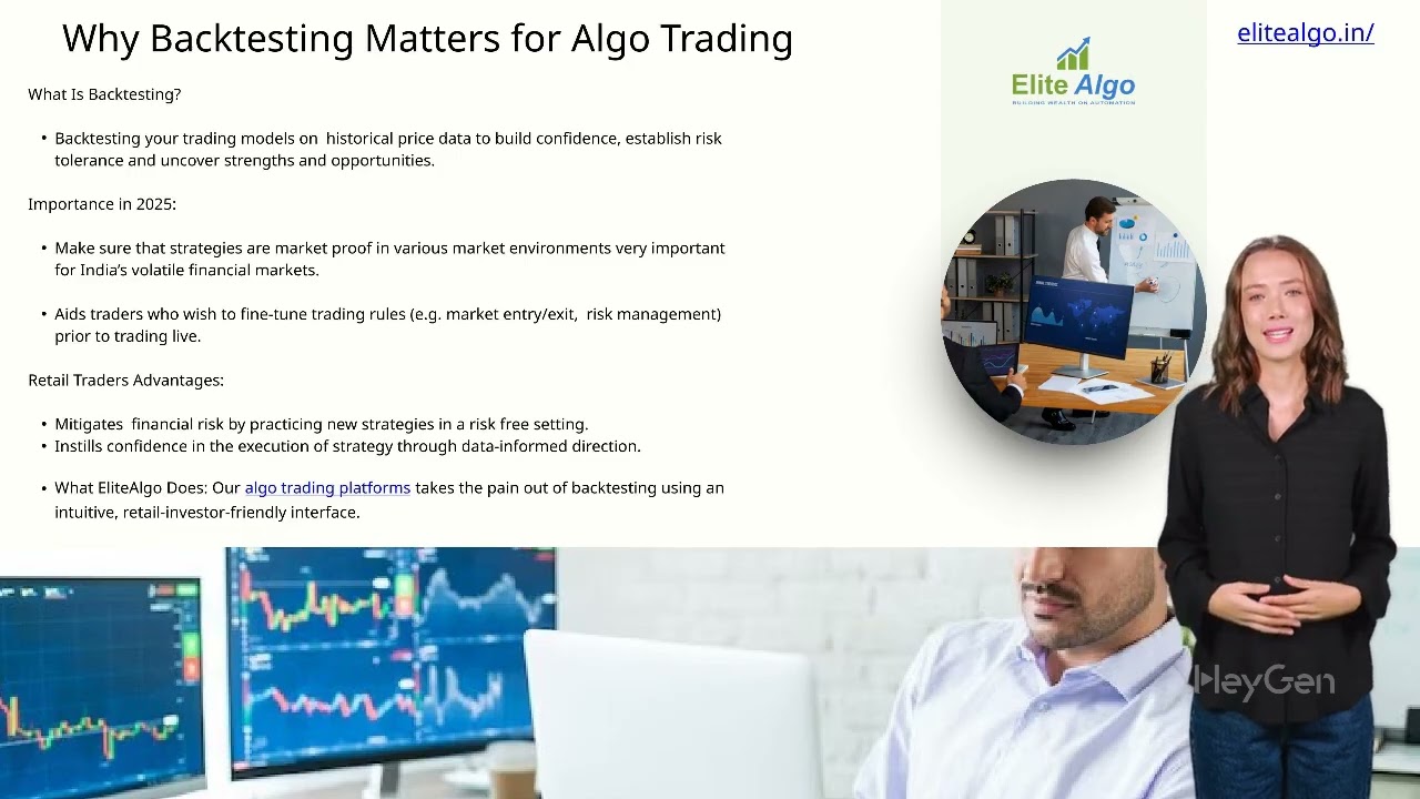 One key feature of the top algorithmic trading software, is a powerful backtesting engine, which allows a trader to test a trading idea against historical data. The purpose of backtesting is simulating an algorithm’s performance under historical market conditions to understand the profit/risk potential of the approach before it's implemented with real money. The best ones allow you to run a lot of backtests at the same time and let the analysis finished in seconds with metrics like Sharpe ratio, drawdown, and how often you win to guide you through strategy optimization.For instance, a trader that is building a trading strategy that follows a trend can use a backtesting to see how the strategy would have performed over the past 5 years of stock market data and then to optimize the parameters in order not to have overfitting. Platforms such as Elite Algo (https://elitealgo.in/) stand out with sophisticated backtesting functionalities targeting Indian markets, featuring good quality historical data and flexible testing capabilities.